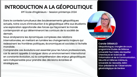 De l’introduction à la géopolitique à la complexité croissante des géopolitiques menées par les grands espaces régionaux, mon enseignement s’adapte aux apprenants de différents niveaux et secteurs d’activités ou disciplines.